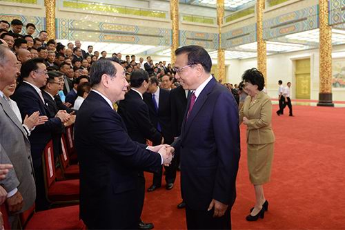 李克強總理會(huì )見(jiàn)謝國民董事長(cháng)等首屆世界華僑華人工商大會(huì )代表