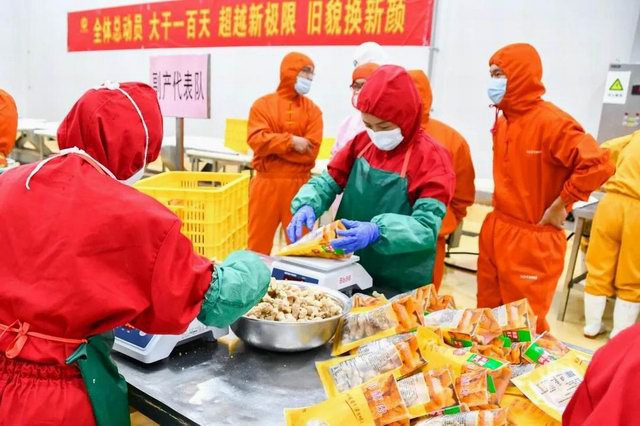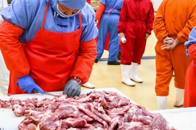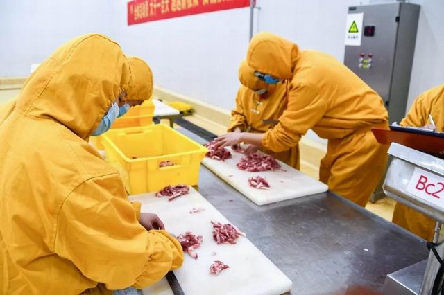 比賽分為兩個(gè)項目:小酥肉原料肉切肉比賽和小酥肉包裝比賽。公司屠宰車(chē)間、分割車(chē)間、調理品車(chē)間、副產(chǎn)車(chē)間和熟食車(chē)間共派出6支參賽隊伍。小酥肉原料肉切肉比賽每個(gè)隊伍時(shí)間限定20分鐘,在20分鐘內根據所切肉條的重量和完成質(zhì)量評定名次。鍋圈小酥肉包裝比賽每個(gè)隊伍包裝300袋(約80kg)小酥肉,根據所用時(shí)間和包裝合格率評定。比賽開(kāi)始之前,熟食廠(chǎng)經(jīng)理張沛宣布了比賽的規則,叮囑參賽選手在比賽中注意安全,隨后比賽拉開(kāi)了帷幕。