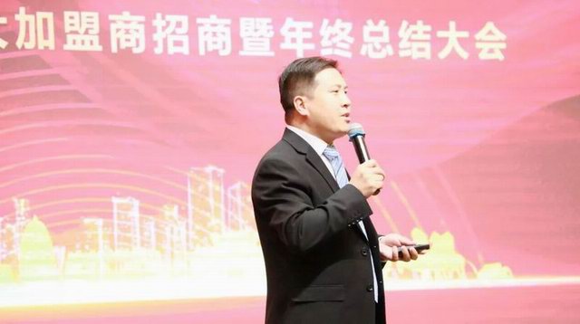 王學(xué)斌***總裁對大會(huì )發(fā)表致辭,對蒞臨大會(huì )的各位嘉賓、加盟商朋友表示歡迎,并從企業(yè)、加盟商發(fā)展及規劃方面進(jìn)行分享,并表示,愿與各位加盟商朋友攜手共創(chuàng )輝煌。