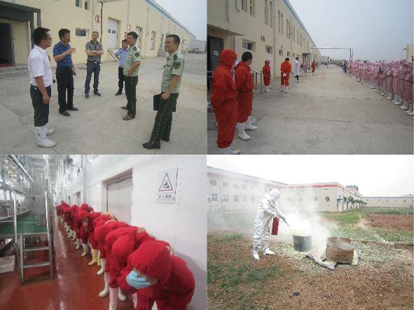 吉林德惠寶源豐禽業(yè)發(fā)生特大事故,造成120人遇難,在全國安全月伊始之時(shí)發(fā)生如此重大事故,教訓慘痛。為吸取這一慘痛的經(jīng)驗教訓,落實(shí)于董事長(cháng)關(guān)于安全整頓的要求,進(jìn)一步增強員工安全意識和自我救助能力,公司于2013年6月7日在各分廠(chǎng)車(chē)間、制冷機房和廠(chǎng)區空地三處演習地點(diǎn)舉行了緊急疏散、液氨泄漏緊急處置和消防滅火的實(shí)戰演練。