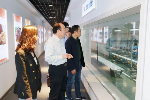 吳蘭院長(cháng)一行通過(guò)參觀(guān)廊參觀(guān)了公司生豬屠宰、分割加工、食品深加工生產(chǎn)線(xiàn)及公司產(chǎn)品展廳,在參觀(guān)過(guò)程中沈道華***副總裁、喬光斌總經(jīng)理向吳蘭院長(cháng)一行介紹了正大集團的基本情況及洛陽(yáng)正大生產(chǎn)加工工藝、食品安全管理、預制菜產(chǎn)品研發(fā)、市場(chǎng)銷(xiāo)售等相關(guān)工作情況。