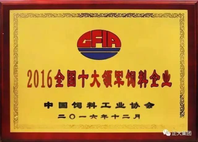 ▲正大集團被中國飼料工業(yè)協(xié)會(huì )授予“2016全國十大領(lǐng)軍飼料企業(yè)”稱(chēng)號
