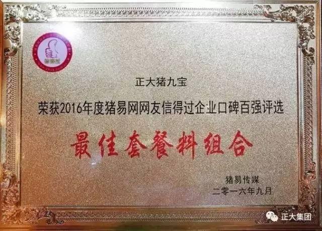 ▲正大豬九寶被豬易網(wǎng)網(wǎng)友評為2016年度“***佳套餐料組合”