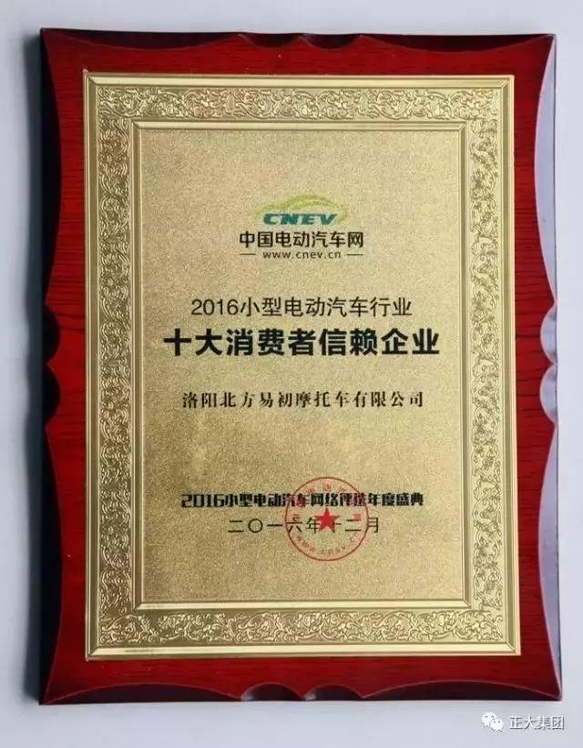 ▲洛陽(yáng)北易榮獲2016小型電動(dòng)汽車(chē)行業(yè)“十大消費者信賴(lài)企業(yè)”